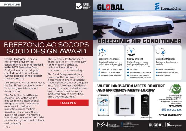 Global Heritage’ s Breezonic Performance Plus RV airconditioner has been recognised in the 2025 Australian Good Design Awards, receiving the coveted Good Design Award Winner accolade in the Product Design category.