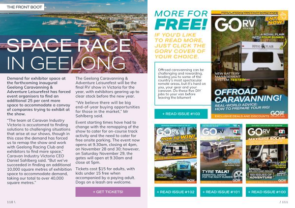 “ The team at Caravan Industry Victoria is accustomed to finding solutions to challenging situations that arise at our shows, though in this case the demand has forced us to remap the show and work with Geelong Racing Club and exhibitors to find more space,” Caravan Industry Victoria CEO Daniel Sahlberg said.“ But we’ ve succeeded in finding an additional 10,000 square metres of exhibition space to accommodate demand, taking our total to over 40,000 square metres.”