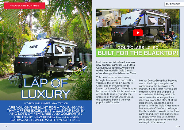WORDS AND IMAGES: MAX TAYLOR ARE YOU ON THE HUNT FOR A TOURING VAN THAT OFFERS EXCELLENT VALUE FOR MONEY AND LOTS OF FEATURES AND COMFORTS? THIS RIG BY NEW BRAND GOLD CLASS CARAVANS IS WELL WORTH YOUR TIME …