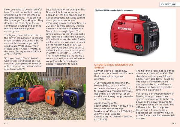 A very popular generator is the Honda EU22i, and it is often recommended as a good choice for powering a caravan. However, depending on your model of airconditioner, it may not prove to be up to the task.