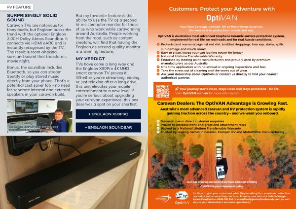 Caravan TVs are notorious for tinny audio, but Englaon bucks the trend with the optional Englaon 2.0CH Dolby Atmos Soundbar. It connects via HDMI eARC and is instantly recognised by the TV. The result is room-shaking surround sound that transforms movie night.