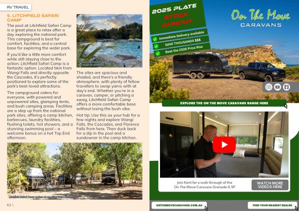 The sites are spacious and shaded, and there’ s a friendly atmosphere, with plenty of fellow travellers to swap yarns with at day’ s end. Whether you’ re in a caravan, camper, or pitching a swag, Litchfield Safari Camp offers a more comfortable base without losing the bush vibe.