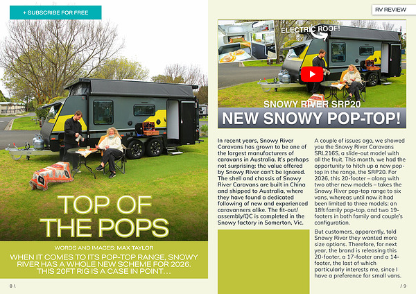 WHEN IT COMES TO ITS POP-TOP RANGE, SNOWY RIVER HAS A WHOLE NEW SCHEME FOR 2026. THIS 20FT RIG IS A CASE IN POINT …