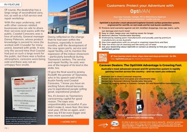 I’ ll give the final word to Jeremy Rockliff, the premier of Tasmania, who in his speech said of the Austin family and Coastal Caravans,“ I know you have an exciting future ahead because you’ re aspirational people selling great, aspirational product.”