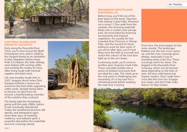 Early along the Reynolds River Track, you’ ll come across the Blyth Homestead ruins, built in 1928 by the Sargent family as an outstation to their Stapleton Station lease. With 13 children, the older siblings were tasked with running cattle and working the nearby tin mine, often living rough with minimal supplies and basic tools.