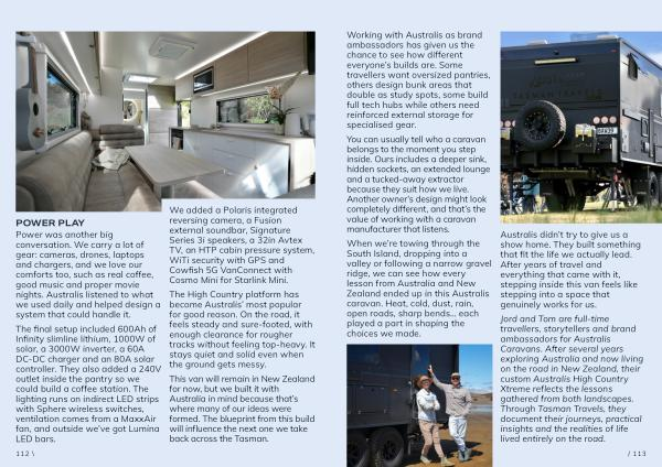 Power was another big conversation. We carry a lot of gear: cameras, drones, laptops and chargers, and we love our comforts too, such as real coffee, good music and proper movie nights. Australis listened to what we used daily and helped design a system that could handle it.