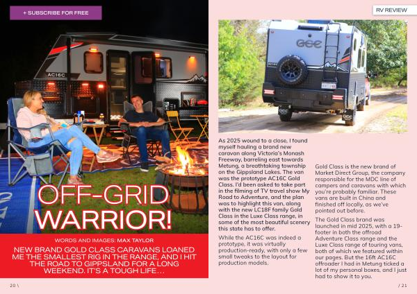 WORDS AND IMAGES: MAX TAYLOR NEW BRAND GOLD CLASS CARAVANS LOANED ME THE SMALLEST RIG IN THE RANGE, AND I HIT THE ROAD TO GIPPSLAND FOR A LONG WEEKEND. IT’ S A TOUGH LIFE …