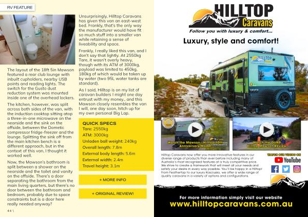 As I said, Hilltop is on my list of caravan builders I might one day entrust with my money., and this Mawson closely resembles the van I will, one day soon, hitch up for my own personal Big Lap.