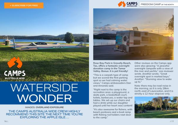 Rose Bay Park in Gravelly Beach, Tas, offers a fantastic overnight donation camp in the Tamar Valley. Bonus: it is pet friendly!