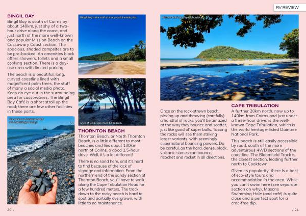 Bingil Bay is south of Cairns by about 140km, just shy of a twohour drive along the coast, and just north of the more well-known and popular Mission Beach on the Cassowary Coast section. The spacious, shaded campsites are to be pre-booked. An amenities block offers showers, toilets and a small cooking section. There is a dayuse area with limited parking.