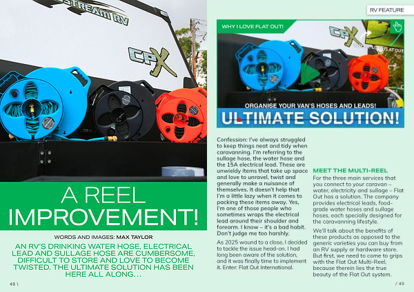 For the three main services that you connect to your caravan – water, electricity and sullage – Flat Out has a solution. The company provides electrical leads, foodgrade water hoses and sullage hoses, each specially designed for the caravanning lifestyle.