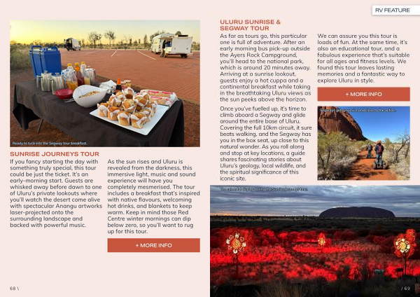 If you fancy starting the day with something truly special, this tour could be just the ticket. It’ s an early-morning start. Guests are whisked away before dawn to one of Uluru’ s private lookouts where you’ ll watch the desert come alive with spectacular Anangu artworks laser-projected onto the surrounding landscape and backed with powerful music.