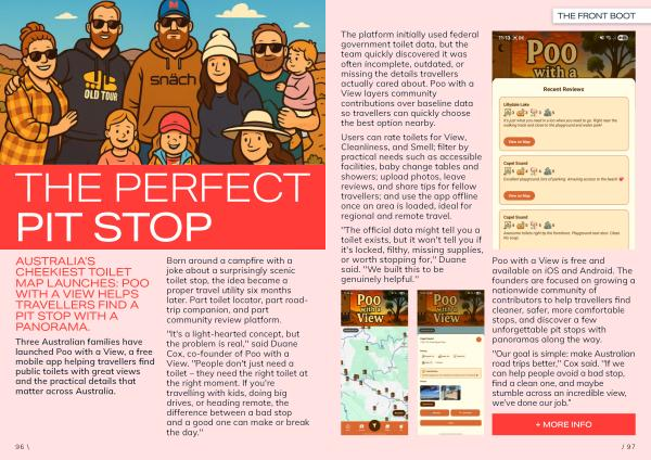 Poo with a View is free and available on iOS and Android. The founders are focused on growing a nationwide community of contributors to help travellers find cleaner, safer, more comfortable stops, and discover a few unforgettable pit stops with panoramas along the way.