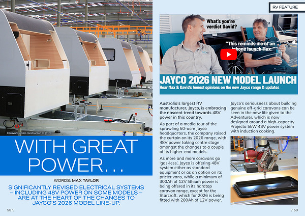 SIGNIFICANTLY REVISED ELECTRICAL SYSTEMS – INCLUDING 48V POWER ON SOME MODELS – ARE AT THE HEART OF THE CHANGES TO JAYCO’ S 2026 MODEL LINE-UP.