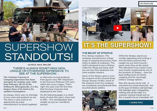 While the Stratus stand was visually appealing and inviting, it was the beast pictured that caught my eye and ensured I spent some time on the stand. This Mitsubishi Fuso Canter truck was heavily customised by one of the founders of Stratus – note the dual rooftop tents for family camping and the seemingly endless storage options.