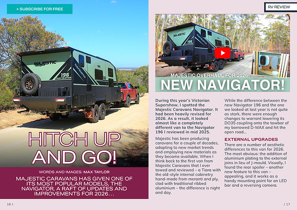 While the difference between the new Navigator 196 and the one we looked at last year is not quite as stark, there were enough changes to warrant lowering its DO35 coupling onto the towbar of my borrowed D-MAX and hit the open road …