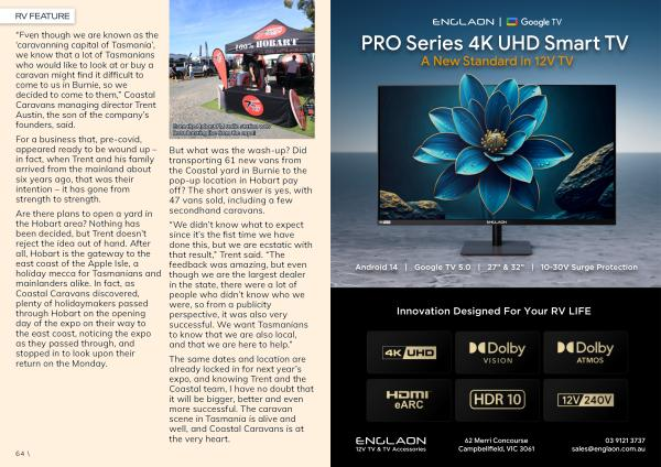 The same dates and location are already locked in for next year’ s expo, and knowing Trent and the Coastal team, I have no doubt that it will be bigger, better and even more successful. The caravan scene in Tasmania is alive and well, and Coastal Caravans is at the very heart.