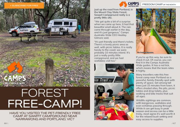 “ It’ s pet-friendly and there ' s toilets. There ' s a lovely picnic area as well, with picnic tables. It is really handy to the coast; we were probably 10 minutes inland. It ' s just a really pretty little campground, and we had wallabies visit too.”