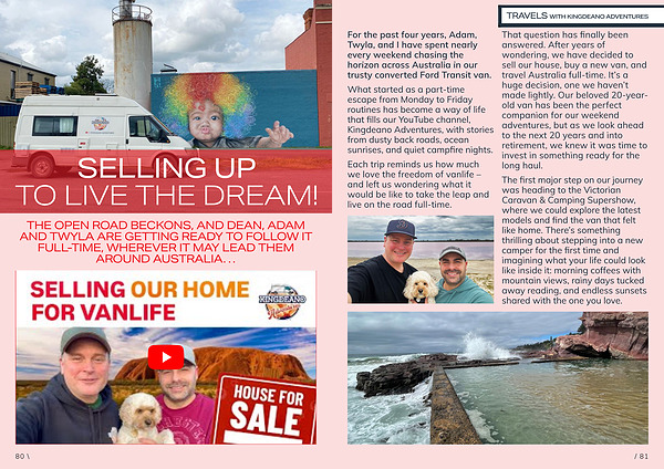 That question has finally been answered. After years of wondering, we have decided to sell our house, buy a new van, and travel Australia full-time. It’ s a huge decision, one we haven’ t made lightly. Our beloved 20-yearold van has been the perfect companion for our weekend adventures, but as we look ahead to the next 20 years and into retirement, we knew it was time to invest in something ready for the long haul.