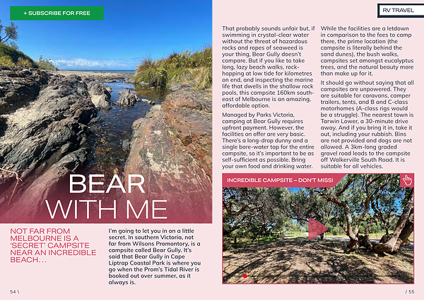 I ’ m going to let you in on a little secret . In southern Victoria , not far from Wilsons Promontory , is a campsite called Bear Gully . It ’ s said that Bear Gully in Cape Liptrap Coastal Park is where you go when the Prom ’ s Tidal River is booked out over summer , as it always is .