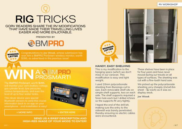 GORV READERS SHARE THE RV MODIFICATIONS THAT HAVE MADE THEIR TRAVELLING LIVES EASIER AND MORE ENJOYABLE .